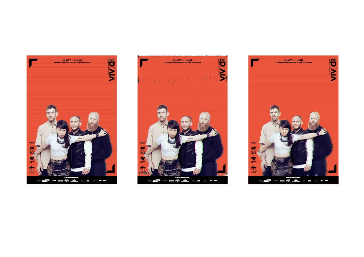 We wanted the look and feel to be glitchy. Like a visual pirate radio takeover of the Sydney Opera House. The "remembered" visuals of a VHS tape being recorded over again and again.